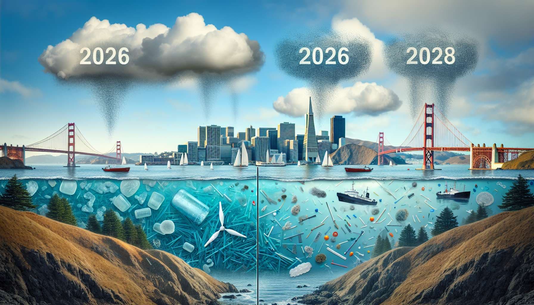 Will SF Bay area water have higher microplastic contamination in 2028 than in 2026?