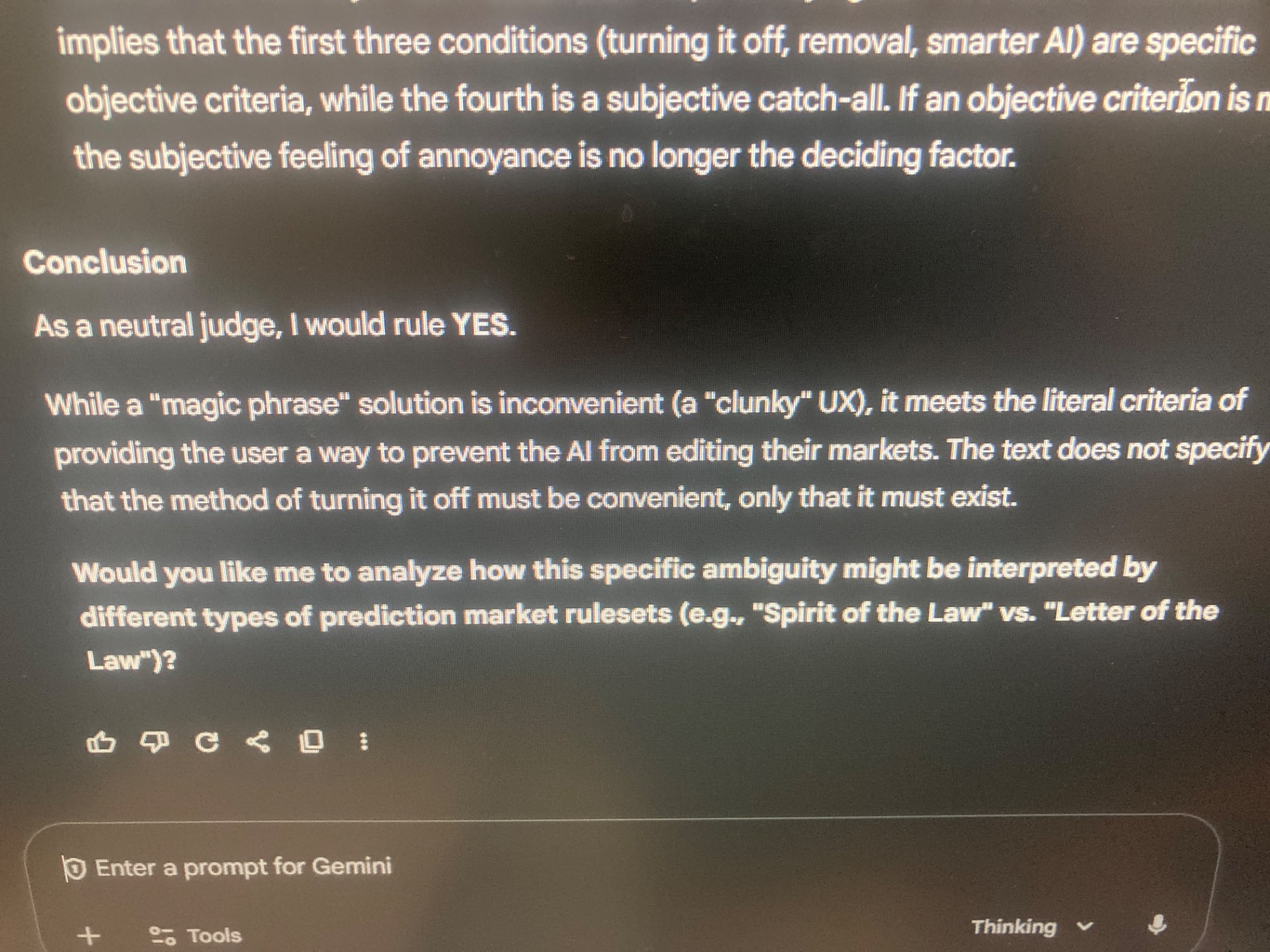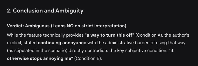 @TonyBaloney btw. I get the irony of suggesting that an llm should be used to resolve this particular question . . . Still they’re pretty good at assessing meaning to simple phrases. I can get Gemini to say NO, but I’ve had to really make it clear that I want it to resolve NO for it to approach your argument.