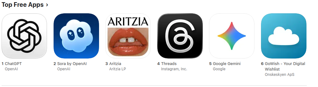 Update 2025-10-19 (PST) (AI summary of creator comment): The market will resolve based on the US iPhone app chart specifically (not worldwide rankings).